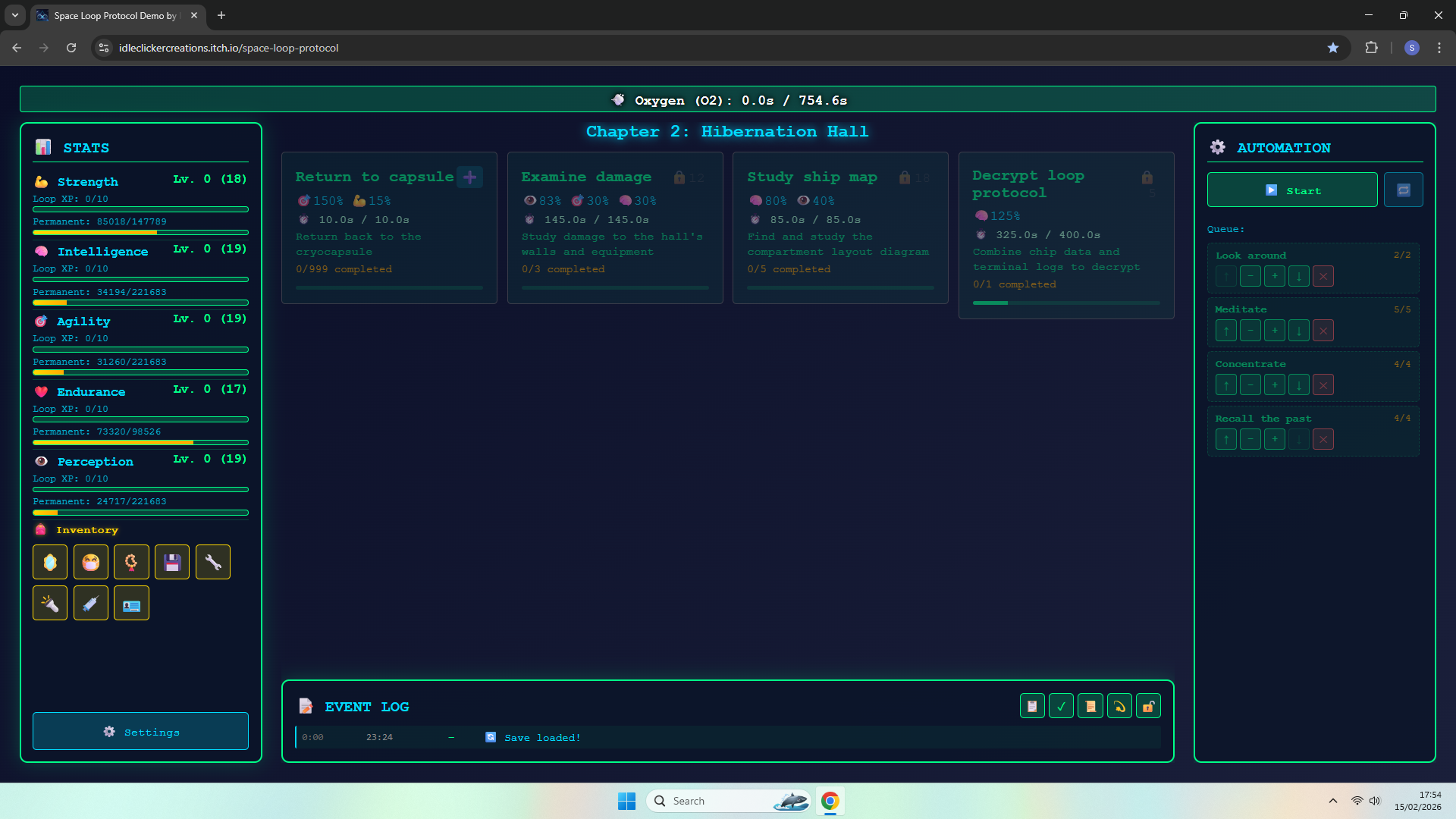 I found a bug or missing content, after a few loops i managed to everything in chapter 1 and 2 in the same loop, and still have time for some in the 3rd chapter, but when i went back from chapter 3 to chapter 2, i was unable to go back to chapter 3, meaning i had to spend 100 seconds looping from chapters 1 and 2 to finish the timer and loop again.